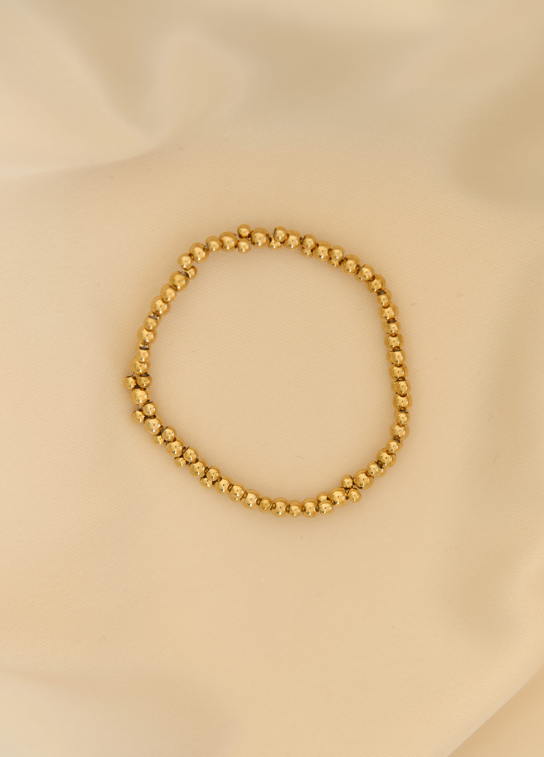 Bohatá „bubble“ textúra: Na rozdiel od klasických náramkov tvoria tento náramok tesne nadväzujúce guličky, ktoré vytvárajú súvislý, plastický povrch. Výsledkom je výraznejší lesk pri každom pohybe.